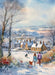 A charming winter village scene with a couple and their dog walking through the snow. Soft snowfall, cozy cottages, and a peaceful countryside setting make this the perfect festive card for the holiday season.