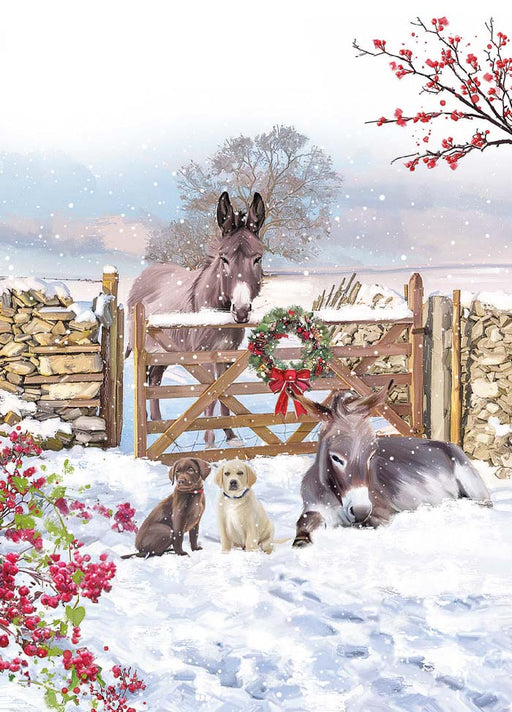 Celebrate the magic of Christmas with this heartwarming winter scene. Set against a soft pink sky, two children walk through a snow-covered village...
