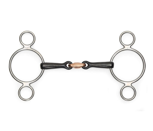 Moving the rein between the main ring and bottom ring allows leverage. Sweet iron and copper encourages the horse to be softer in the mouth. The 5"...