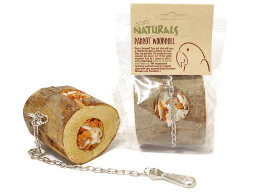A fantastic thick woodroll filled with carrots, peanut and coconut Includes a metal chain and claps. Ideal for spring, summer and autumn feeding ma...
