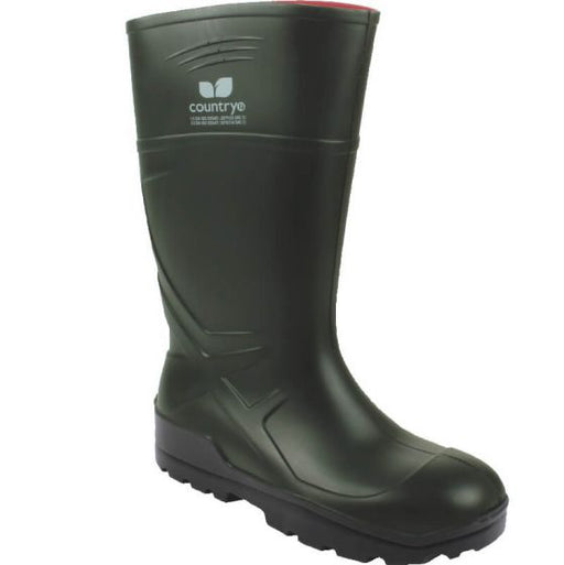 Easy clean, nylon lining, resistant to low concentrate acids and alkalis, disinfectants and manure. Green with black sole. Standard : CE