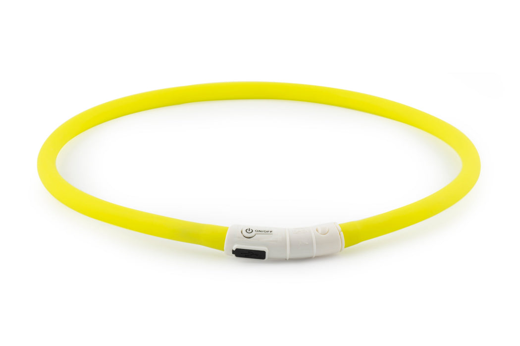 Ancol USB Flashing Band creates a visible light that can be seen up to 500 metres, alerting other road users while exercising in the dark and keeps your dog in sight if exercising off the lead. These bands have three light settings and can be charged by plugging into a USB port. Flashing band comes in one size of 70 cm in length and can be cut down to size for a comfortable fit. Available in a yellow colour.