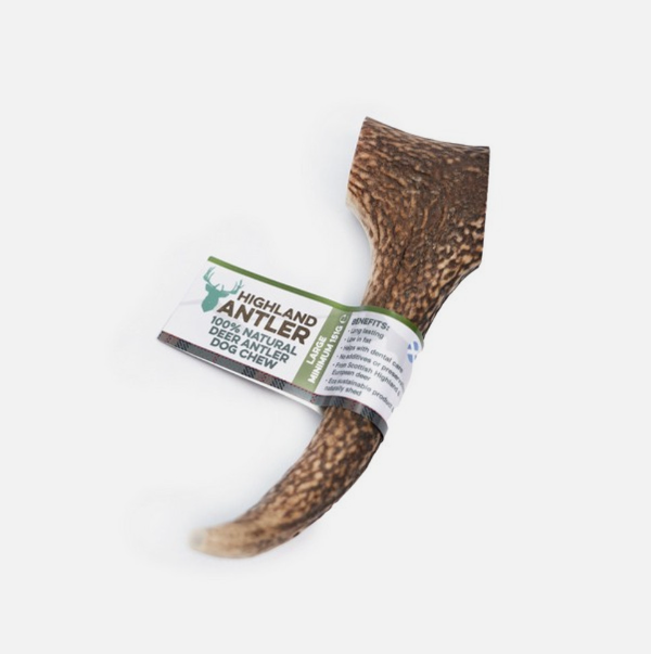The Antos Antler is another of our 100% Natural chews for dogs Our Antos Antlers have simply been cleaned (with no chemicals) and cut to various sizes/weights for dogs to chew on. Sharp points have been removed to make them safe. Antler is a healthy chew, full of minerals and calcium. They are long lasting, and as they are unprocessed, they will not splinter either. The Antos Antler satisfies a dogsnatural urge to chew, whilst also helping to strengthen and clean teeth. There is no odour from antler, and as your dog grinds down the antler over time, there is also very little mess. Being a naturally grown chew, no two antlers are the same. Some are a harder dark brown colour whilst others are a softer greyish/white. They also come in various shapes and sizes, keeping your dog interested for longer. Our deer antler chews come from a sustainable, natural resource. Legal Disclaimer Please ensure your dog is under superevision at all times.More Information
