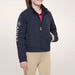 This bold colour-block jacket features water resistant and breathable fabric technology to keep the elements out and the body warm, dry and ventilated. Features include a full lining, two-way zip and zippered hand pockets. The removable hood is designed to fit over a helmet. Finished with Ariat branding.