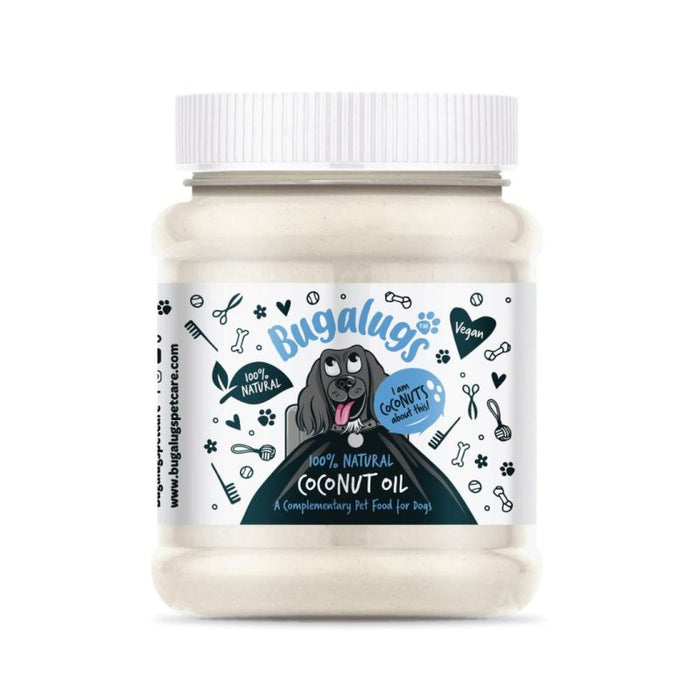 Bugalugs Coconut Oil is 100% natural with no additives or preservatives. This protein rich treat is full of healthy fats that help maintain your pets skin and coat condition. Can also be applied direct to your dogs skin.