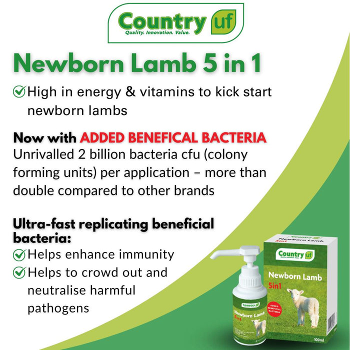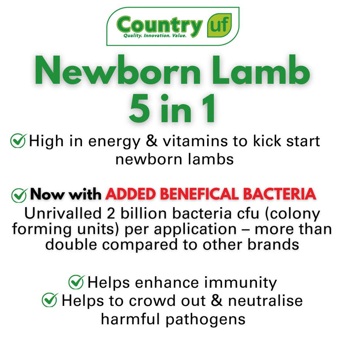 Newborn 5 in 1 is‚ a complementary feed which provides EU sourced colostrum, egg powder, vitamins and trace elements. Recommendations for use: At birth, at the first signs of scouring, following digestive upsets or at times of stress.