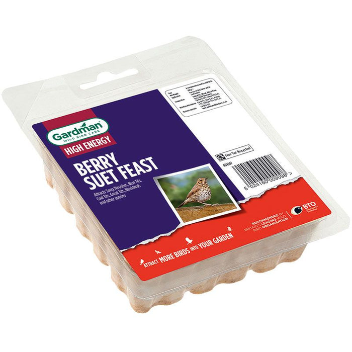 Why Use a Gardman Berry Suet Feast Gardman Berry Suet Feasts are perfect for giving birds the extra energy they need especially during the Winter months What to Expect Gardman Berry Suet Feast will attract the following birds: Dunnock Robin House Sparrow Goldfinch Bullfinch Blue Tit Chaffinch Greenfinch Coal Tit Long Tailed Tit Great Tit Song Thrush Blackbird Nuthatch and many more!