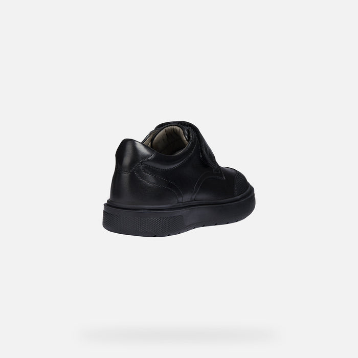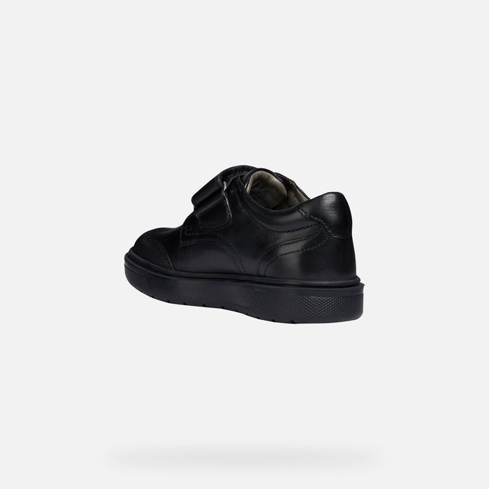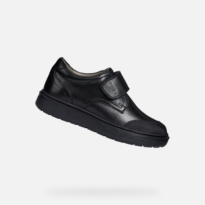 Boy's comfortable shoe with a formal-looking school-appropriate design. Riddock is a piece of footwear made from plain black leather with a formal inflection. The protective toe guard makes it perfect for youngsters' playtime in the school yard.