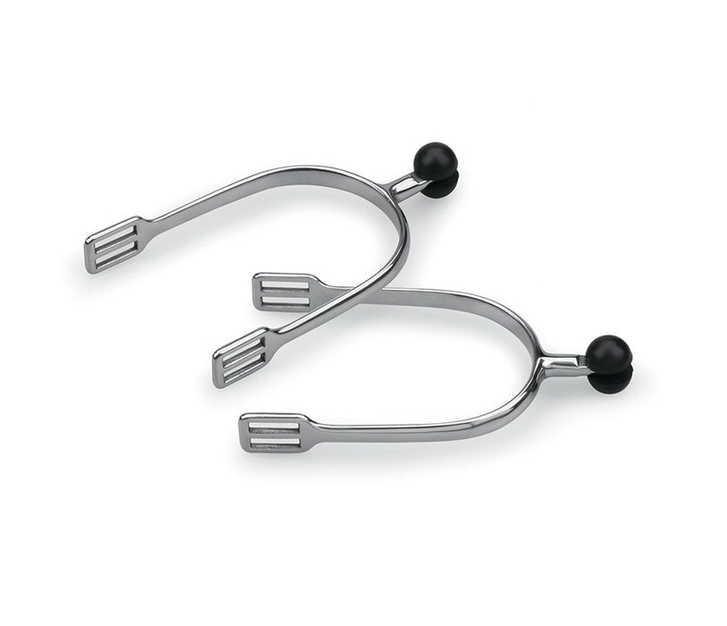 More gentle than a standard shank spur, the ball rolls rather than jabs and prevents marking. 30mm neck.