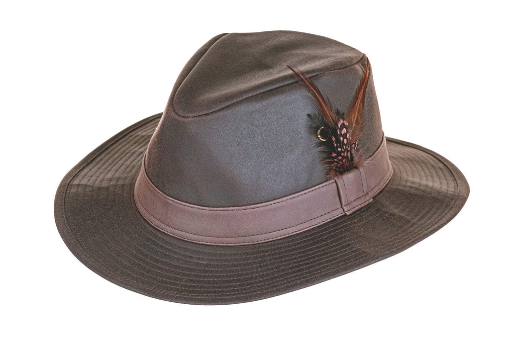 The Rambler is a trilby style waxed hat made from British Halley Ecowax Cotton Twill fused Lining Brass eyelets